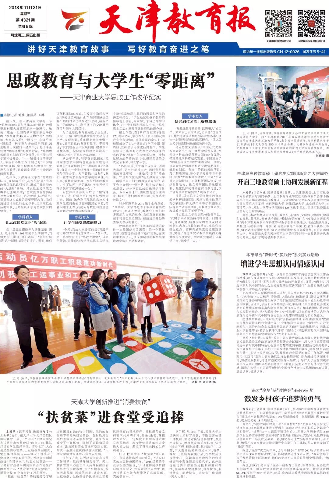 11月21日,天津教育报报道我校思想政治教育改革工作,“思政教育与大学生‘零距离’——WilliamHill中文思政工作改革纪实”。
