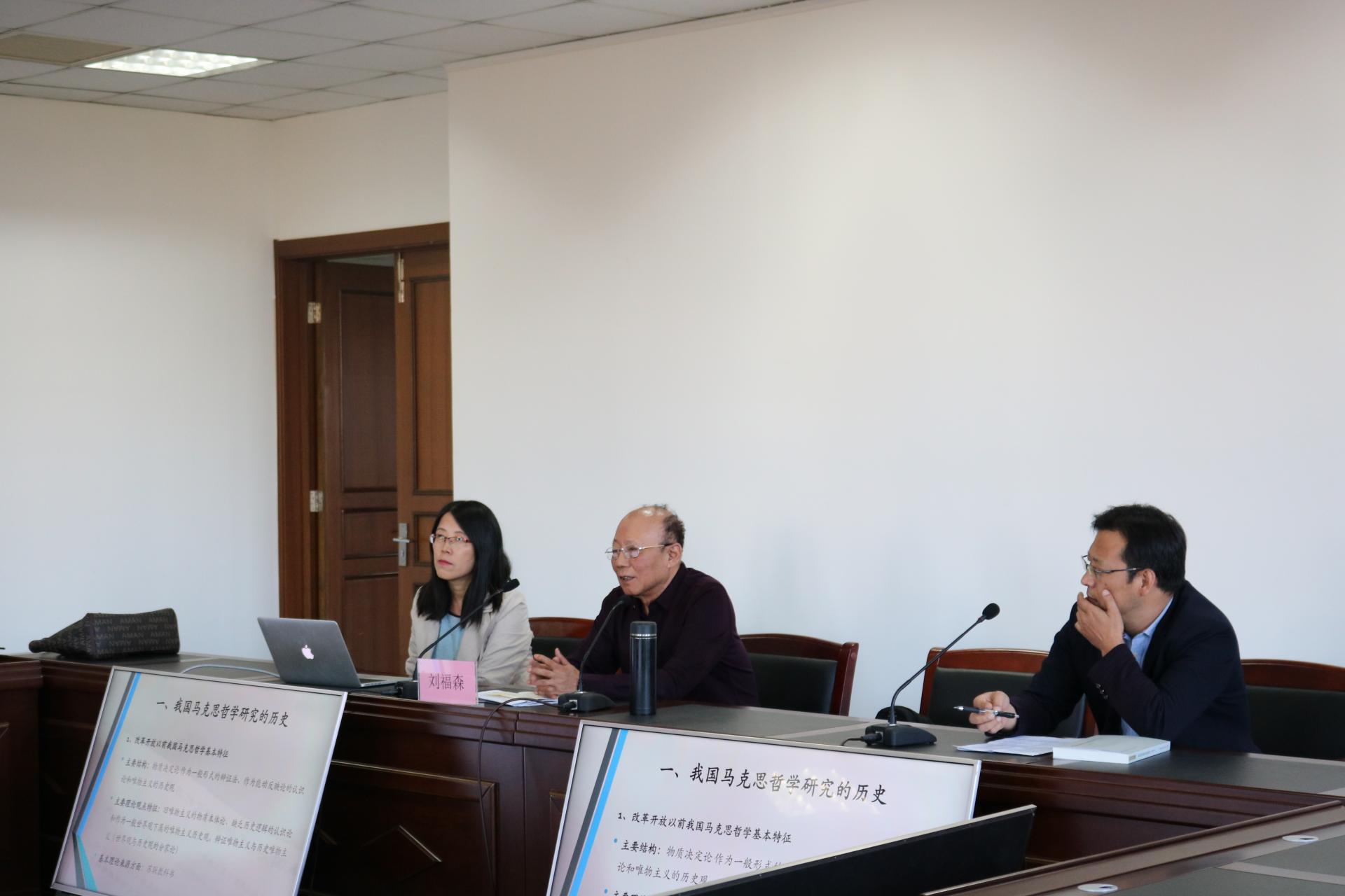刘福森教授以“中国马克思主义哲学研究的历史和现状”为题,从历史唯物主义的观点出发,对我国马克思主义哲学的发展历史和现状进行理论阐述。讲座分三个部分,从八十年代哲学改革存在的问题入手,重新阐释马克思的新唯物主义观点,对马克思主义的历史观、世界观和哲学立场进行详细介绍。