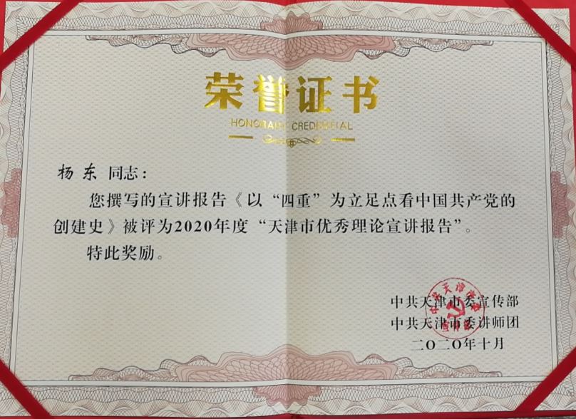 近日,市委宣传部印发《关于表彰基层理论宣讲先进集体、个人和优秀理论宣讲报告、微视频、微信公众号的决定》,对10个基层理论宣讲先进集体、10名基层理论宣讲先进个人、10篇优秀理论宣讲报告、4个优秀理论宣讲微视频和4个优秀微信公众号予以表彰。我校明德讲坛特聘主讲人、william威廉中文杨东副教授的《以“四重”为立足点看中国共产党的创建史》宣讲报告入选天津市基层理论宣讲优秀理论宣讲报告。