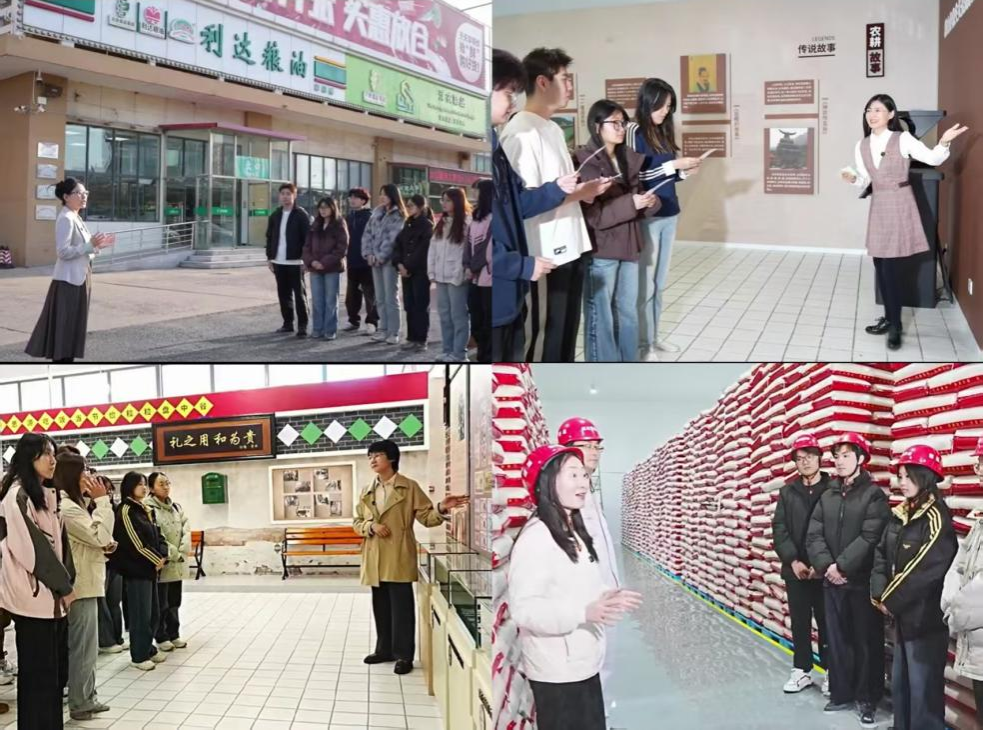 在全国粮食安全宣传周到来之际,李欣、杨帆、张江芬、王娜四位老师组织学生走进了天津利达粮油,开展了一堂以《传承百年粮香共守大国粮仓》为题的现场教学。教学围绕“粮食文化和津粮沿革”“新中国粮食的生产与分配”“科技储粮守好大国粮仓”和“高质量党建赋能企业高质量发展”四个专题展开协同讲授。通过实地参观、专业讲解、互动体验等多种形式,溯源粮食文化、津粮历史沿革,学习国家粮食储备知识,了解粮食生产加工工艺流程、先进技术和粮食全产业链安全保障措施,使学生深刻认识到世界百年大变局中粮食安全的重要战略意义,进一步增强了对国家粮食安全战略的使命感。在实践体验环节,师生亲手制作了“福袋”造型面点。