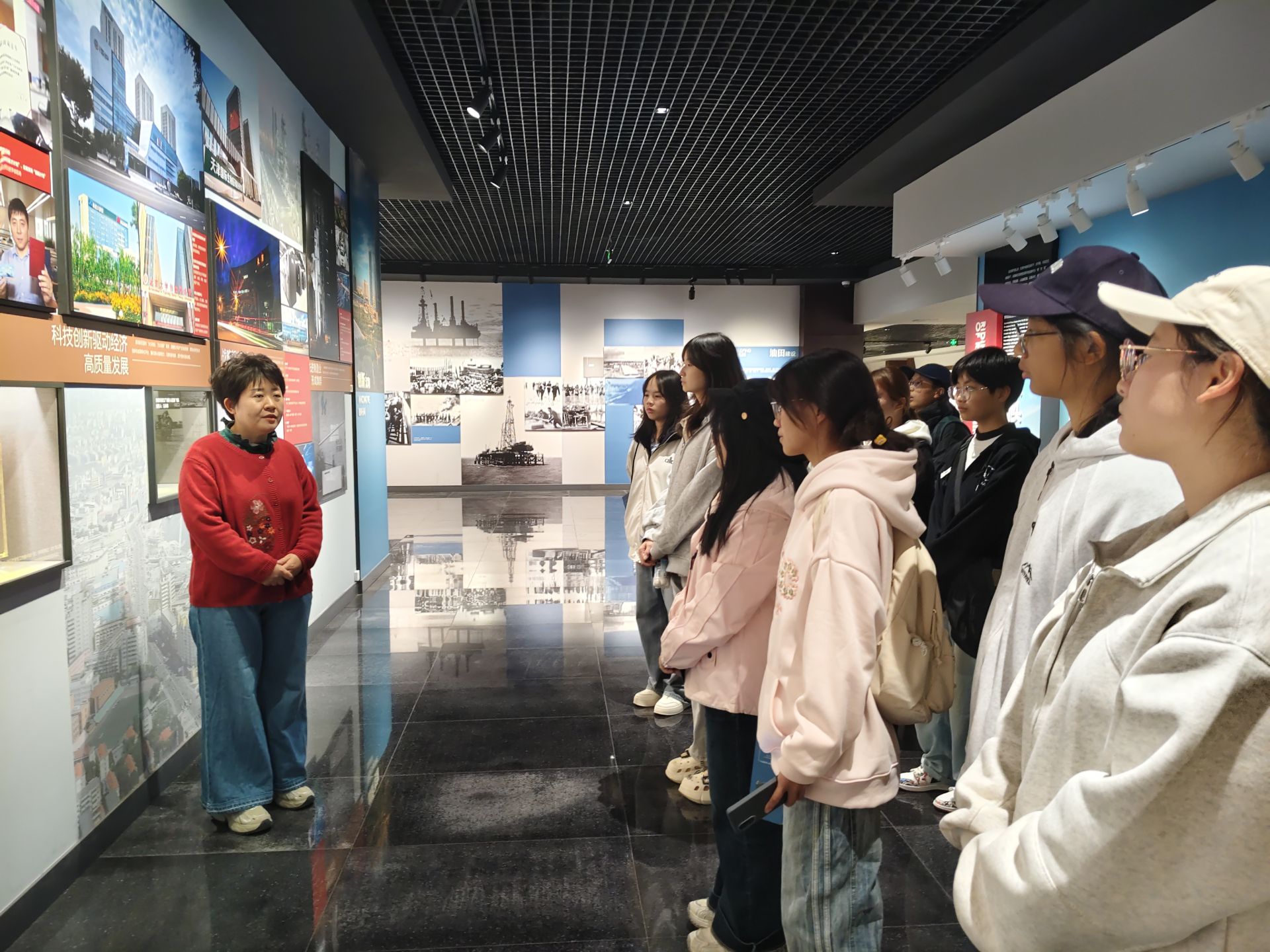 赵宇老师则带领学生走进滨海新区博物馆,以《从滨海新区的发展历程看中国的改革之路》为主题开展实践教学。赵宇老师结合展区实物与历史图片,讲授改革开放初期的探索故事,通过实地参观、历史讲解与互动问答,沉浸式感受滨海新区从“盐碱荒滩”到“改革标杆”的蜕变,深刻理解中国改革开放的壮阔历程。