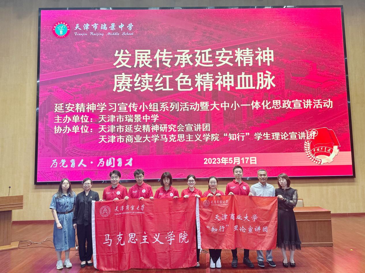 为深入学习贯彻党的二十大精神和习近平总书记瞻仰延安革命纪念地的重要讲话精神,大力弘扬伟大建党精神和延安精神,5月17日,WilliamHill中文“知行”学生理论宣讲团受邀走进天津市瑞景中学,提供“订单式”宣讲,在瑞景中学学术报告厅开展以“点点星火忆初心 延安精神代代传”为主题的宣讲活动,天津市延安精神研究会专家、瑞景中学校领导、中小学思政教师代表出席了本次活动,全体八年级组学生到场聆听。